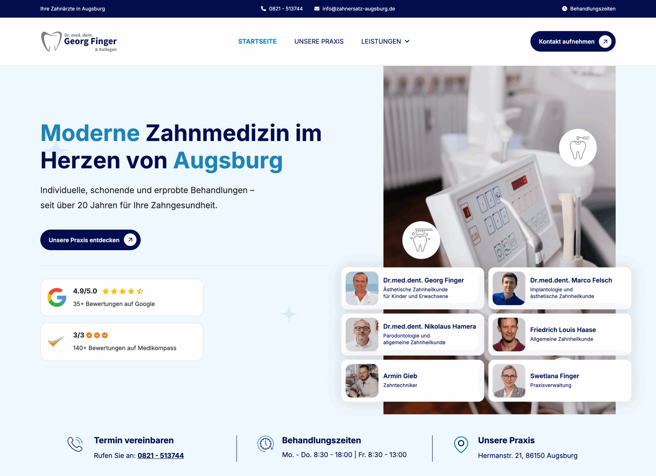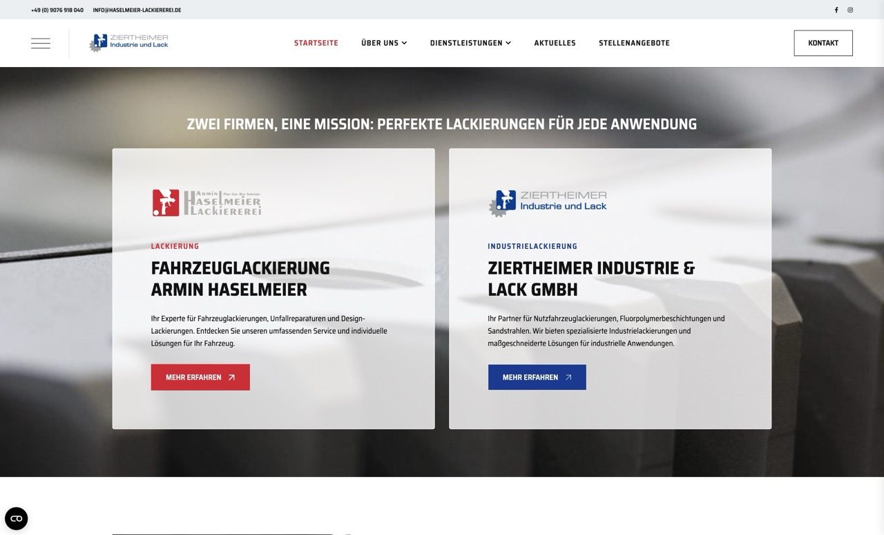 - Zusätzliche Seiten: Über uns, Karriere inkl. Bewerbungsformular